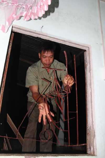 "Khoảng một phút thì chúng tôi bẻ gãy các thanh sắt, hở ra khoảng trống đủ một người lọt vào. Lúc này tên giang hồ đang tìm cách vào nhà nên tôi phải hành động thật nhanh", anh Chiêu nhớ lại.