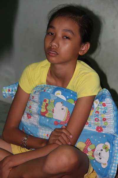 | Bé Ngọc Châm vẫn còn bần thần và sợ khi nhớ lại cảnh tên giang hồ cầm súng vào nhà mình cùng nhiều tiếng nổ chát tai. Ảnh: Hoàng Trường. |