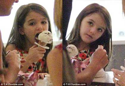 Như mọi lần, cô bé 6 tuổi vô tư ôm cổ, vuốt tóc và hôn vào má mẹ, tại quán kem, Suri ngoan ngoãn ngồi trên ghế và thưởng thức cây kém mát lạnh trên tay.