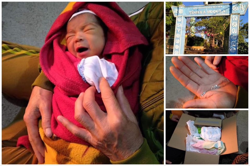 Bé trai sơ sinh bị bỏ rơi trước Tịnh xá Ngọc Lai