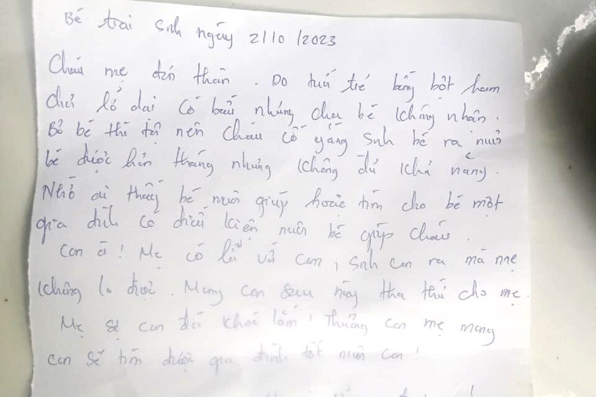 Con à, mẹ có lỗi với con, sinh con ra mà mẹ không lo được. Mong con sau này tha thứ cho mẹ. Mẹ sợ con đói khóc lắm! Thương con mẹ, mong con sẽ tìm được gia đình tốt nuôi con…" - trích nội dung bức thư.