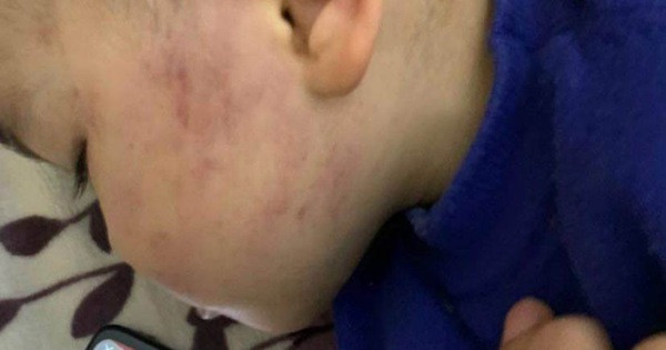 "Ngày 12/12, tôi nhận được cuộc gọi của giáo viên thông báo con bị ngã vào rổ đồ chơi nên bầm xước má, tối về thì thấy cả một bên má trái của con bầm tím, gọi điện lại cho cô giáo để hỏi sự thực thì lúc này cô mới bảo hôm đó giáo viên khác đón và chăm sóc các con", chị H. chia sẻ.