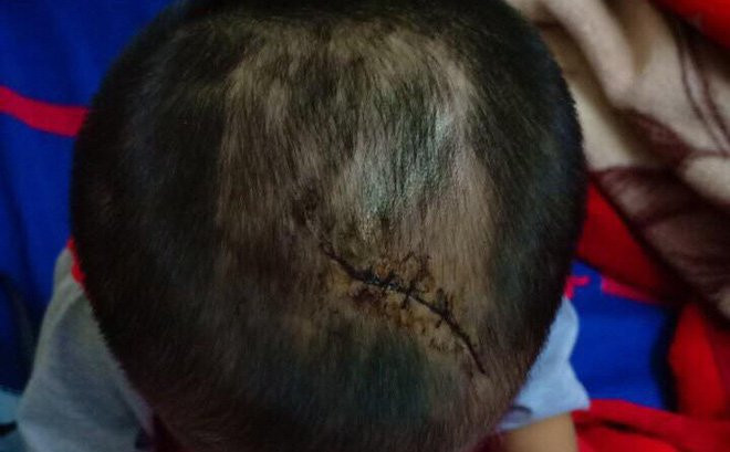 Vết thương trên đầu bé trai phải khâu nhiều mũi. (Ảnh gia đình cung cấp)