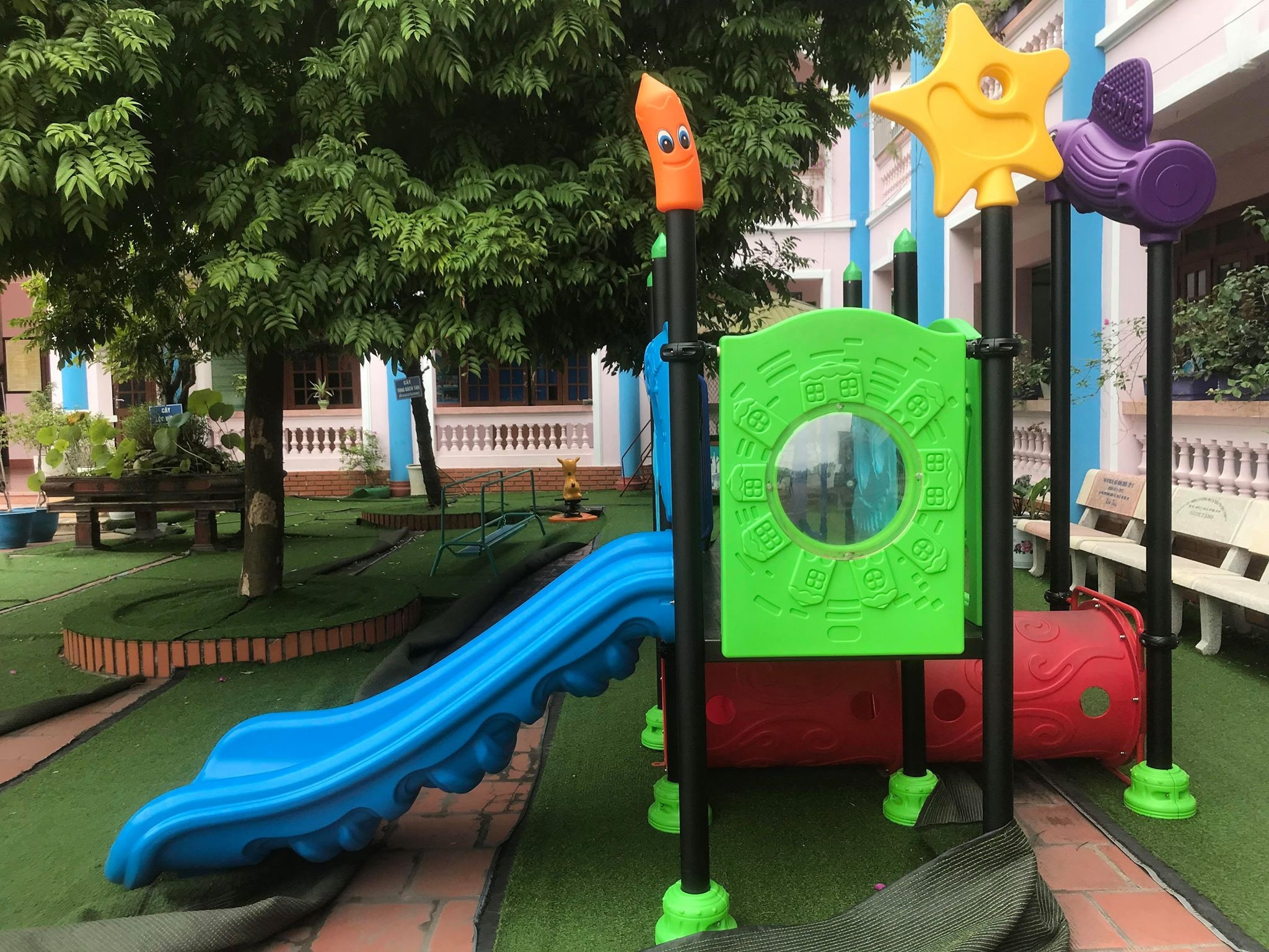 Chiếc cầu trượt ở sân trường mầm non Phù Lỗ, nơi cháu Đ.T. chơi và bị mắc kẹt dẫn đến thiệt mạng.