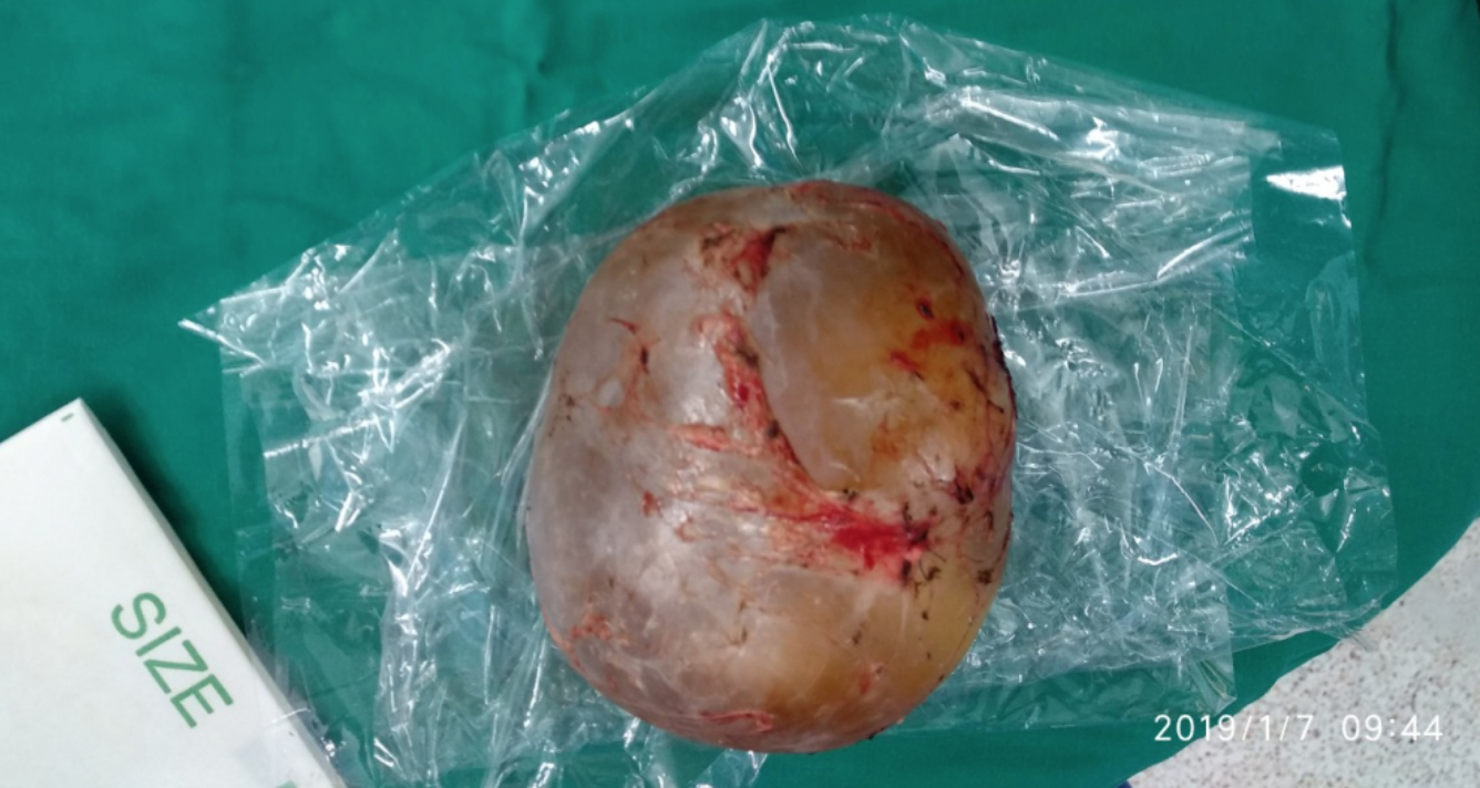 Sau 1 giờ đồng hồ, ca mổ diễn ra thuận lợi. Bác sĩ lấy ra khối "u thai" đường kính khoảng 12 cm và nặng 1,5 kg và chiếm hơn một nửa ổ bụng phải.