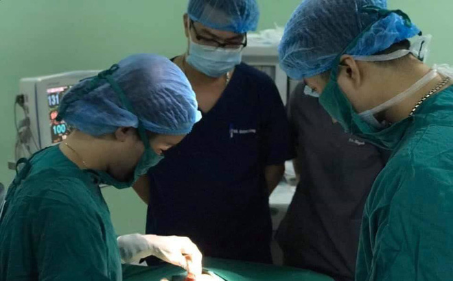 Khi tiếp nhận cháu bé, các bác sỹ phải mổ cấp cứu khâu lỗ thủng khí quản, khâu cầm máu các vết thương đầu, mặt và tay của nạn nhân. Sau đó, cháu B. qua được cơn nguy kịch, hiện tại đang thở máy.