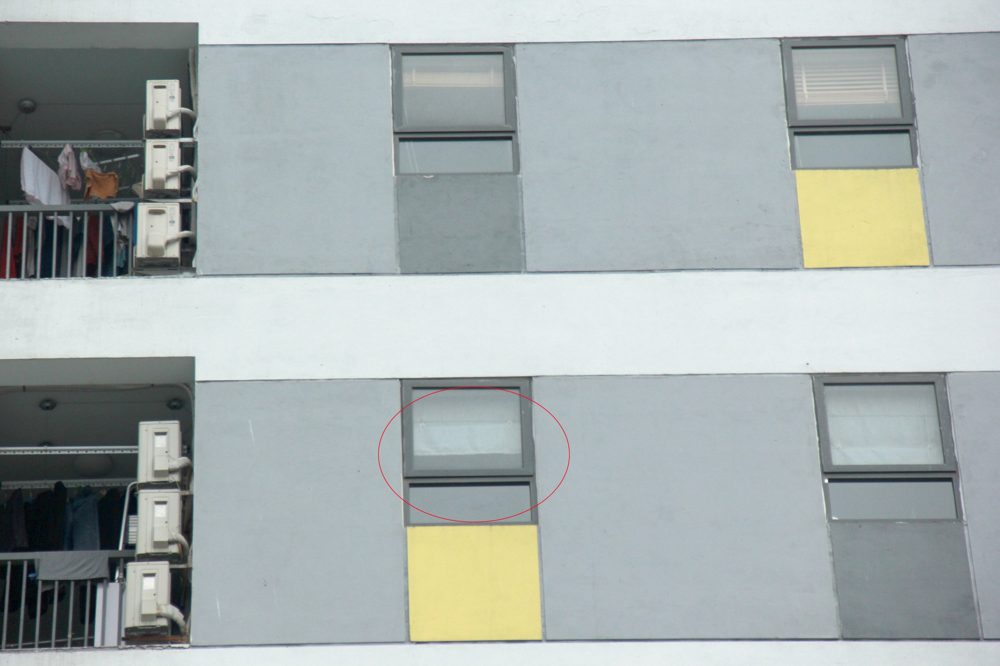 Ở ngay tầng trên của căn hộ 306 (khoanh màu đỏ), chủ hộ cũng chưa lắp đặt chấn song cửa sổ.