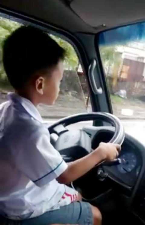 Clip: Bé trai 6 tuổi lái xe tải khiến người xem rùng mình