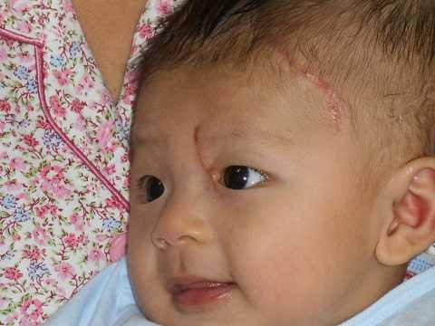 Các chẩn đoán gần đây cho thấy bé có ổ nhiễm trùng nằm trong não, nơi vị trí lưỡi dao bẩn đi qua. Các bác sĩ đã làm sạch khối áp xe trong não, lắp lại hộp sọ cho bệnh nhi. Vấn đề này nằm trong dự kiến của các bác sỹ, với vết thương như vậy khả năng bị nhiễm trùng trong khoảng 2 năm đầu.