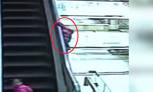 Video: Váy quá dài, mẹ vấp ngã, đánh rơi con từ thang cuốn cao 12m