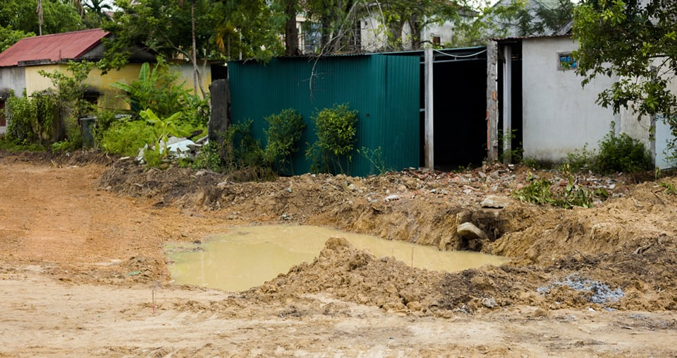 Hố công trình nơi cháu Quang A. chết đuối không có biển báo, rào chắn.