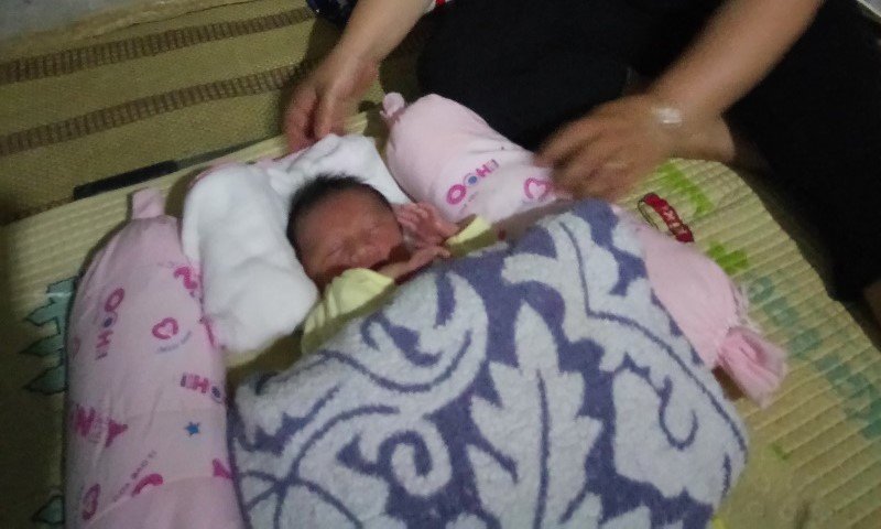Thời điểm được bà Gái phát hiện, cháu bé đang trong tình trạng tím tái, cơ thể bị lạnh, sức khỏe yếu.