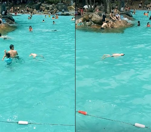 Khu vui chơi khá đông người, tuy nhiên không một ai phát hiện ra sự bất thường ở cậu bé này. Sóng nước bồng bềnh khiến bé trai lật úp rồi ngửa nên mọi người đều cho rằng bé trai này đang nô đùa.