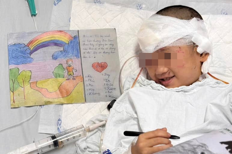 Sau nửa tháng điều trị tích cực tại Bệnh viện Việt Đức, sức khoẻ bé trai 7 tuổi đã có nhiều cải thiện. (Ảnh: BVCC)