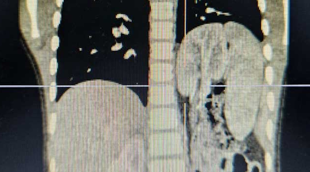 Bé trai nhập viện sau nhiều lần bị nhiễm khuẩn hô hấp, xuất hiện cơn đau tức ngực kéo dài. Qua thăm khám, chụp X-quang, cắt lớp vi tính (CT) kết quả hình ảnh cho thấy, bé bị thoát vị cơ hoành trái, với các cơ quan nội tạng gồm lách, đại tràng, ruột non, đặc biệt là thận trái bị lạc chỗ trong lồng ngực.