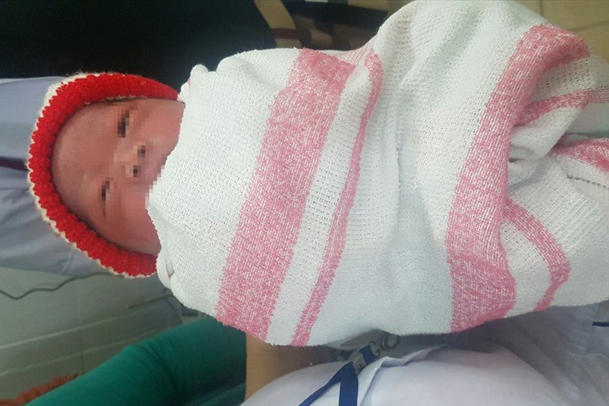 Tiến lại gần, anh Nhân phát hiện một bao tải nhỏ, bên trong là một bé trai sơ sinh còn nguyên dây rốn. Lúc này, cháu bé được bọc trong hai chiếc khăn cũ màu xanh và trắng.