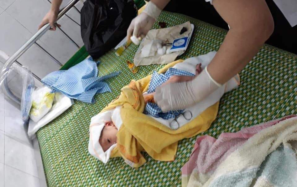 Hiện, bé trai bị bỏ rơi được chuyển đến Bệnh viện Sản – Nhi tỉnh Quảng Ngãi để tiếp tục được chăm sóc sức khỏe.