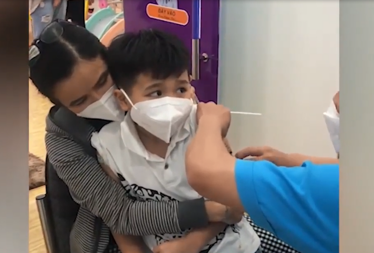 Bé trai sợ tiêm, luôn miệng trách bác sĩ lừa đảo