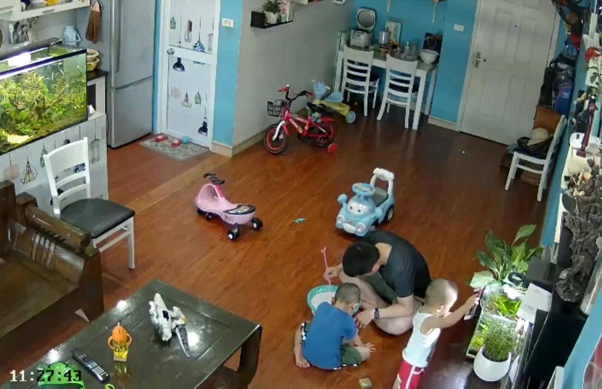 Cậu bé tranh thủ lúc bố và anh trai không để ý liền cầm điện thoại cho vào bể cá.