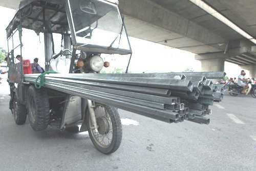 Chiếc xe chở tôn, sắt trên đường Hà Nội