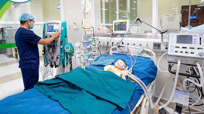 Bệnh nhi được đưa vào viện trong tình trạng rất nặng, suy hô hấp, suy tuần hoàn, suy thần kinh, tổn thương thận cấp (tình trạng suy đa cơ quan do sốc nhiễm trùng).