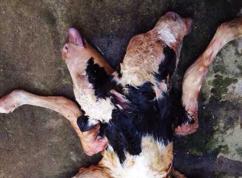 | Chú bê vừa sinh có 2 đầu, 6 chân. |