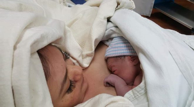 Xuân Mai bên con trai mới sinh. (Ảnh: FBNV)