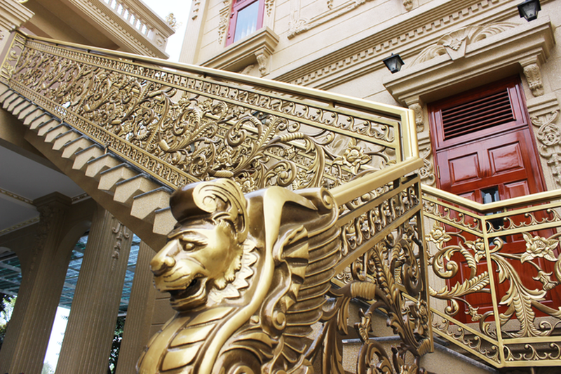Điểm nổi bật của biệt thự là nhiều chi tiết bên trong được ốp vàng 24k, bao gồm trần nhà, tường, cầu thang...(Ảnh: Người lao động)