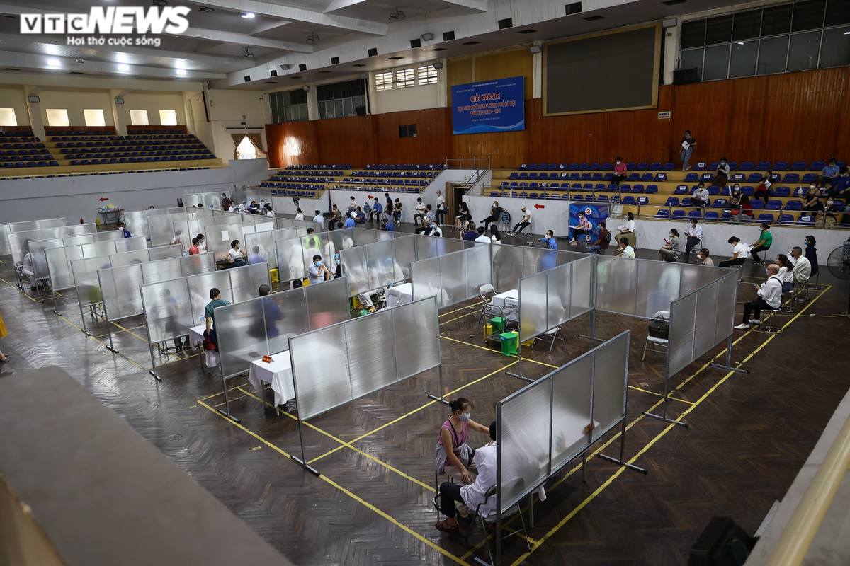 Đáng chú ý, điểm tiêm Nhà thi đấu Trịnh Hoài Đức (phường Cát Linh) được xây dựng theo mô hình "bệnh viện dã chiến" để có thể vừa đảm bảo công tác phòng chống dịch, vừa tiêm vaccine trên diện rộng cho người dân.