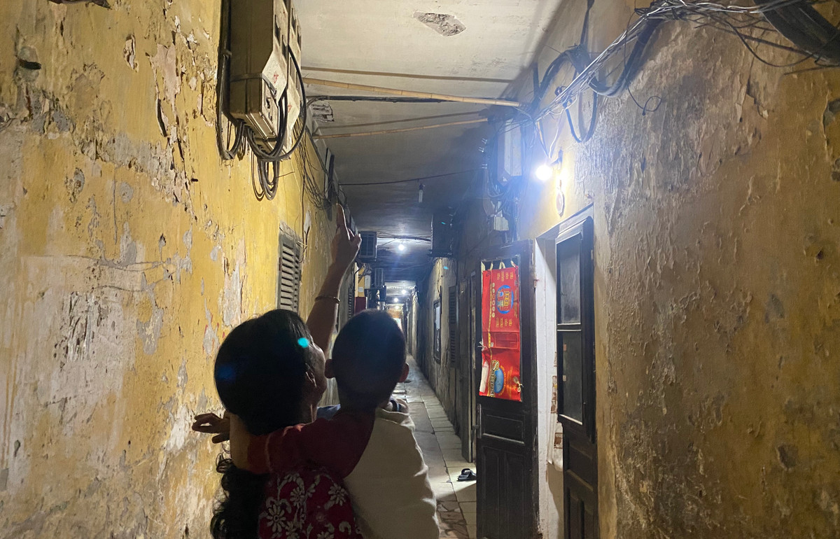 Bà Đỗ Thị Nguyệt Nga (60 tuổi), tổ phó tổ dân phố 12 (gồm dãy nhà A, B) cho biết, ở tầng 3 của dãy nhà A, mỗi lần mưa thì một số chỗ nước trên trần chảy xuống xối xả như thác đổ. “Vì dãy nhà này được xây dựng từ những năm 1958-1959, đến nay đã hơn 60 năm tuổi nên xuống cấp, nhiều chỗ không ngăn được nước mưa nữa".