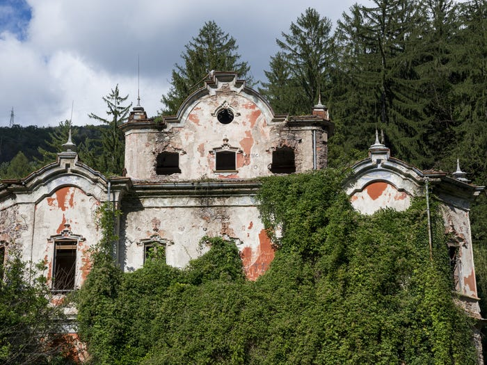 Năm 1862, Bá tước Felix De Vecchi tự sát sau khi ông về nhà và thấy vợ bị sát hại và con gái mất tích. Người thân của ông tiếp tục sống tại căn biệt thự cho đến Thế chiến II. Sau đó, ngôi nhà bị bỏ hoang vào thập niên 1960. Năm 2002, một trận tuyết lở đã phá hủy các ngôi nhà xung quanh, tuy nhiên "biệt thự ma" vẫn tồn tại cho đến bây giờ. (Ảnh: Shutterstock).