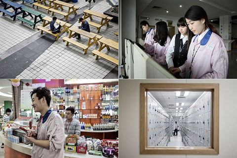 Tại quán cà phê của nhà máy, một nhóm phụ nữ vội vàng ăn trưa trong khoảng thời gian nghỉ 50 phút. Họ đến từ khắp nơi ở Trung Quốc, từ Tứ Xuyên ở phía tây đến Sơn Đông ở phía đông bắc. Không ai đến đây làm việc nhiều hơn một vài tháng.