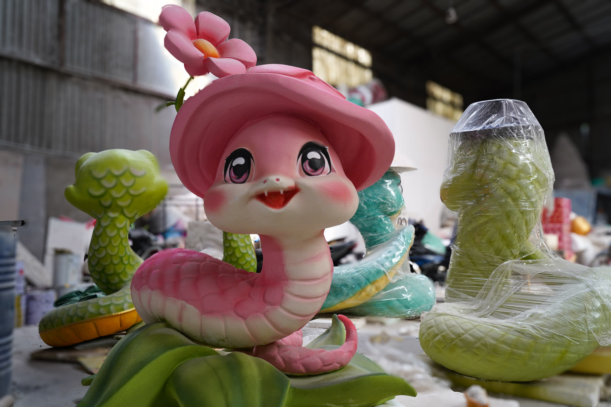 Ngoài linh vật rắn đầu uy nghi, bên trong nhà xưởng còn sản xuất rất nhiều những sản phẩm rắn chibi đầy dễ thương.