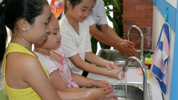 Rửa tay bằng xà phòng trước và sau khi ăn