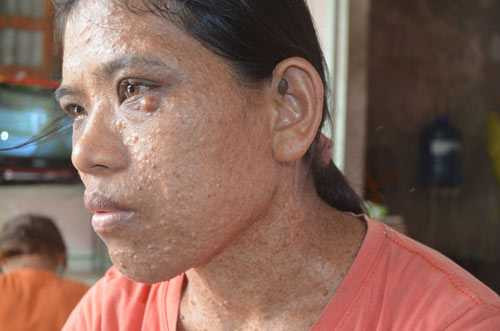 Chị Hạnh nói: “Nơi nào mặc quần áo kín ánh sáng thì mọc càng nhiều, riêng vùng mặt, chân, tay mọc lên rồi tôi thấy ngứa gãi vỡ ra mọc lại to hơn, có nám đen. Tôi cảm nhận thấy mỗi ngày mụt thịt càng phát triển to hơn khắp người. Theo thời gian tôi sợ sẽ khiến mọi người khó nhận ra và sợ mình… ”