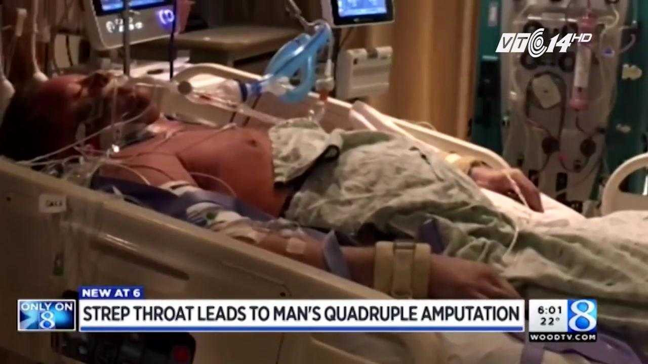 Một người đàn ông tại Mỹ được chẩn đoán bị viêm họng cấp tính dẫn đến nhiễm trùng bụng; trong quá trình điều trị, tay chân của anh bị hoại tử và buộc phải cắt bỏ.