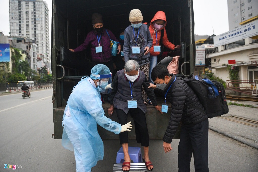 Tất cả bệnh nhân được sắp xếp lên xe chuyên dụng của Ban chỉ huy quân sự quận Hai Bà Trưng.