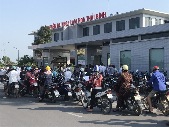 Rất đông người tập trung tại Bệnh viện Đa khoa Lâm Hoa (Thái Bình) để dõi theo vụ việc.