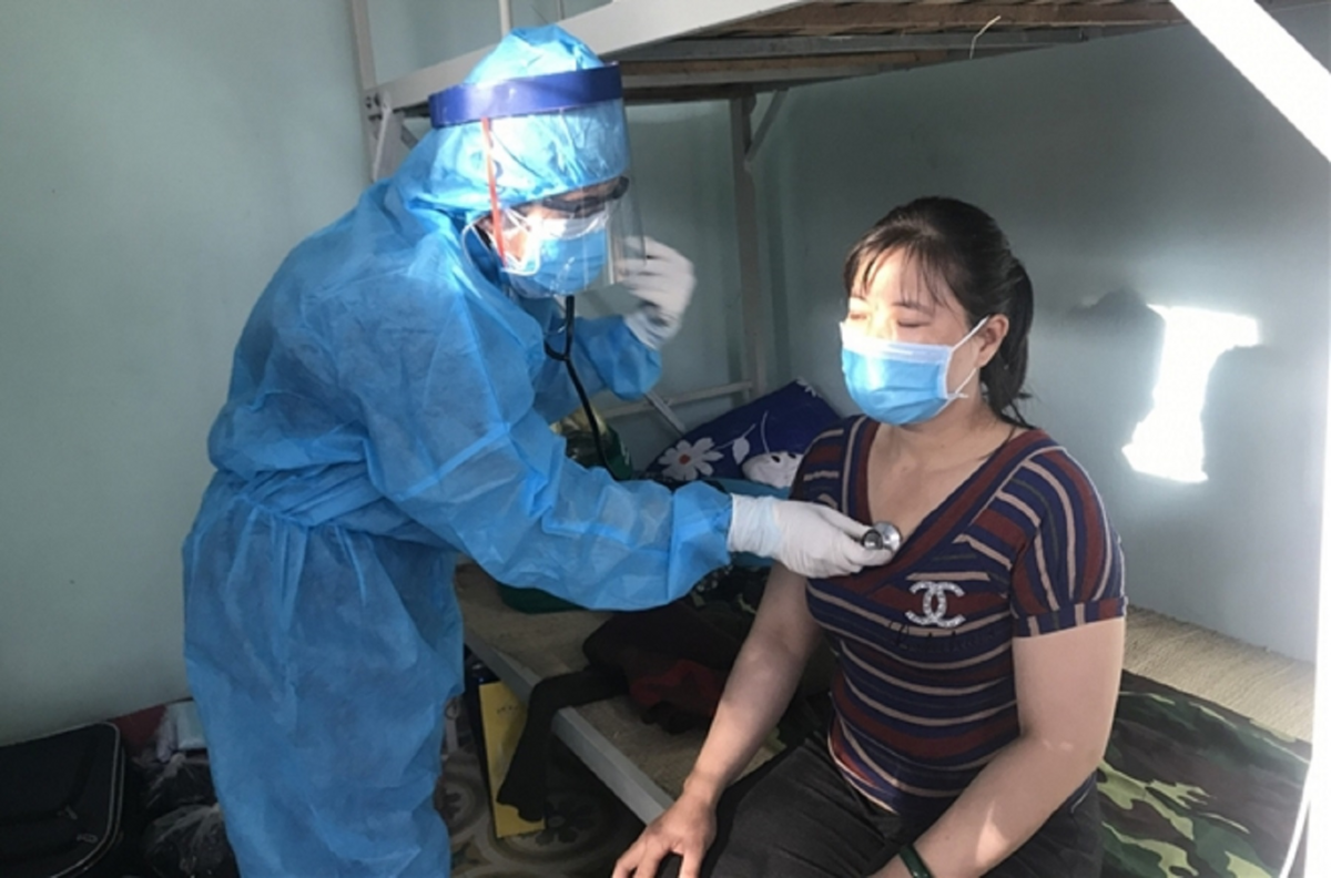 Hình ảnh cán bộ y tế khám cho đối tượng F1 đang được cách ly tập trung tại Thị xã Ayun Pa. (Ảnh: VOV)