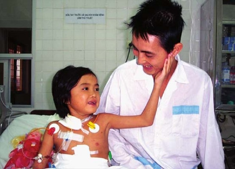 Nguyễn Thị Diệp và bố sau ca phẫu thuật ghép gan tháng 1/2004.