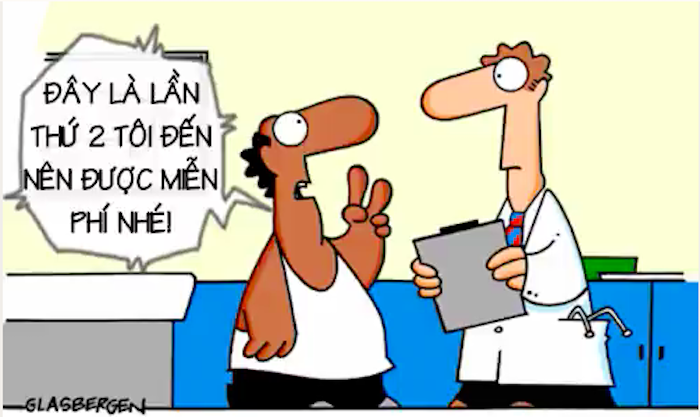 - Ồ tôi nhớ ra rồi! - người đàn ông quyết định nói dối để tiết kiệm tiền - Đây là lần thứ hai tôi đến khám ở đây. Lần trước bác sĩ có nhắc đến điều này mà tôi quên béng đi mất!