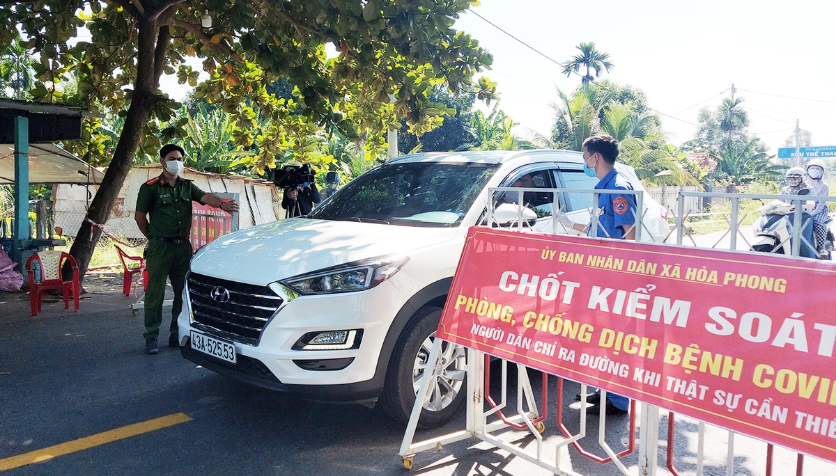 Chốt kiểm soát tại lối ra vào thôn Thạch Bồ, xã Hòa Phong, huyện Hòa Vang.