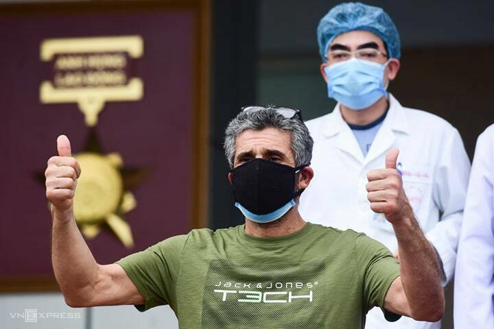 Xuất viện chiều 2/4, Davios Claude, 52 tuổi, người Pháp, liên tục cảm ơn các bác sĩ Việt Nam vì đã chữa khỏi bệnh cho ông.
