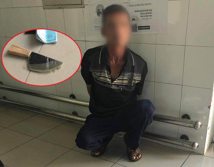 Đội an ninh của bệnh viện phát hiện bệnh nhân mang theo con dao bầu trong người. Ngay sau đó, đội an ninh khống chế, thu giữ con dao và gọi công an để giải quyết vụ việc.