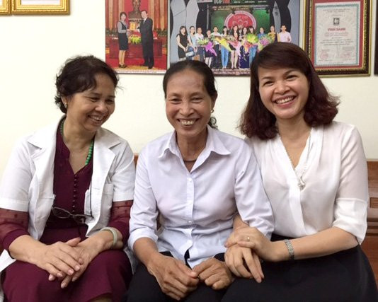 Lương y Nguyễn Quý Thanh (bên phải), bà Phượng (giữa) và con gái bà Phượng với nụ cười hạnh phúc vì vượt qua tử thần.