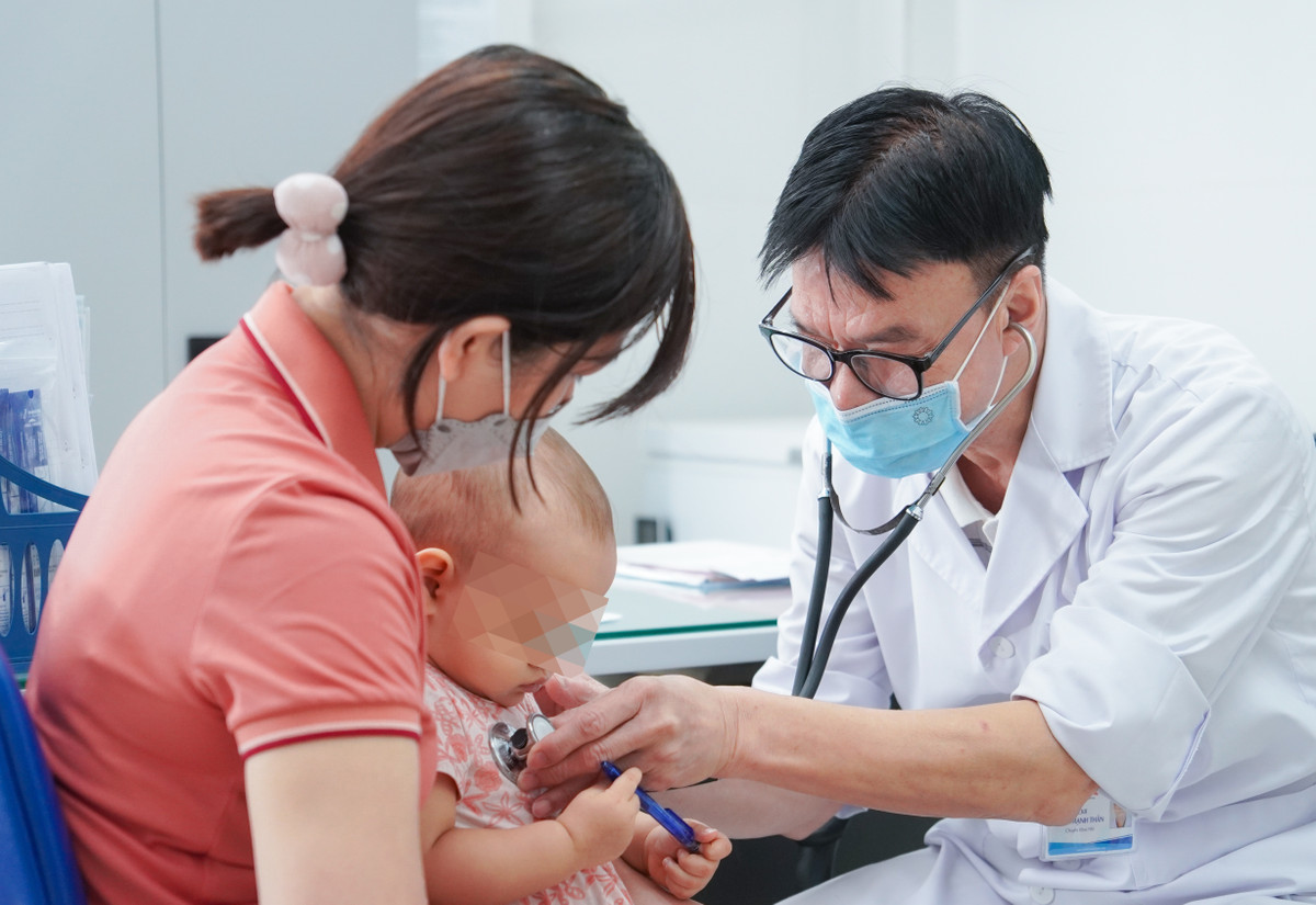 Bác sĩ kiểm tra sức khoẻ cho bệnh nhi. (Ảnh: N.Loan)