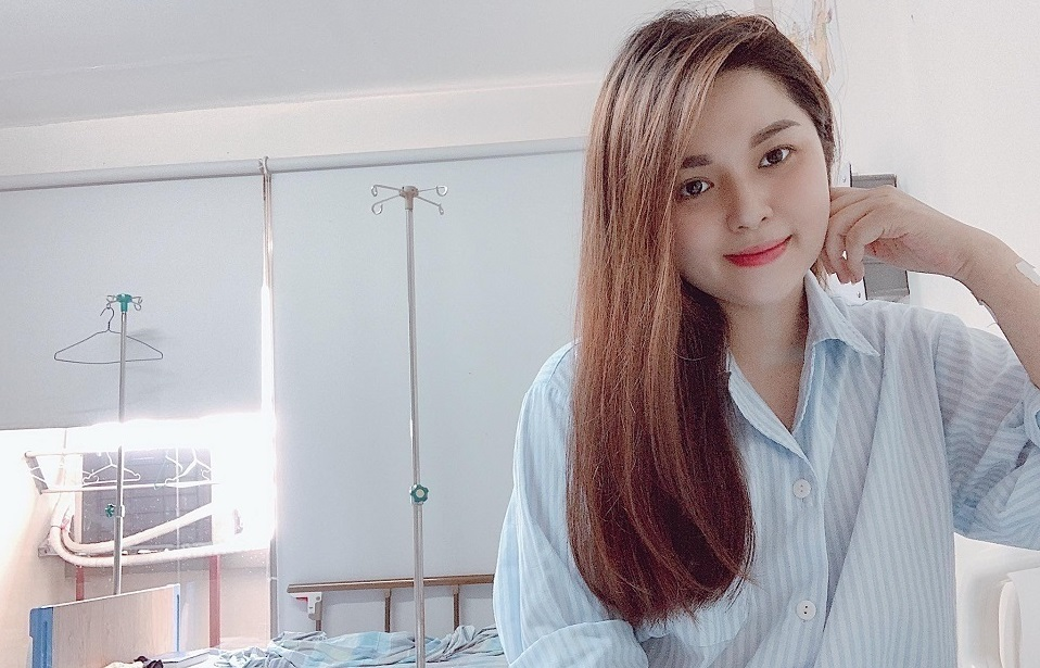 MC Diệu Linh tại phòng bệnh ở Viện Huyết học - Truyền máu Trung ương.