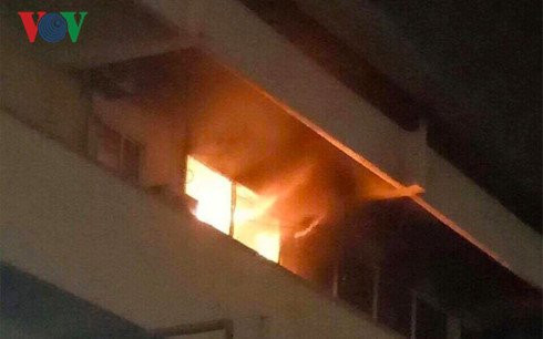 Ngọn lửa được phát hiện từ phía cửa sổ tầng 4 của Bệnh viện Bạch Mai.