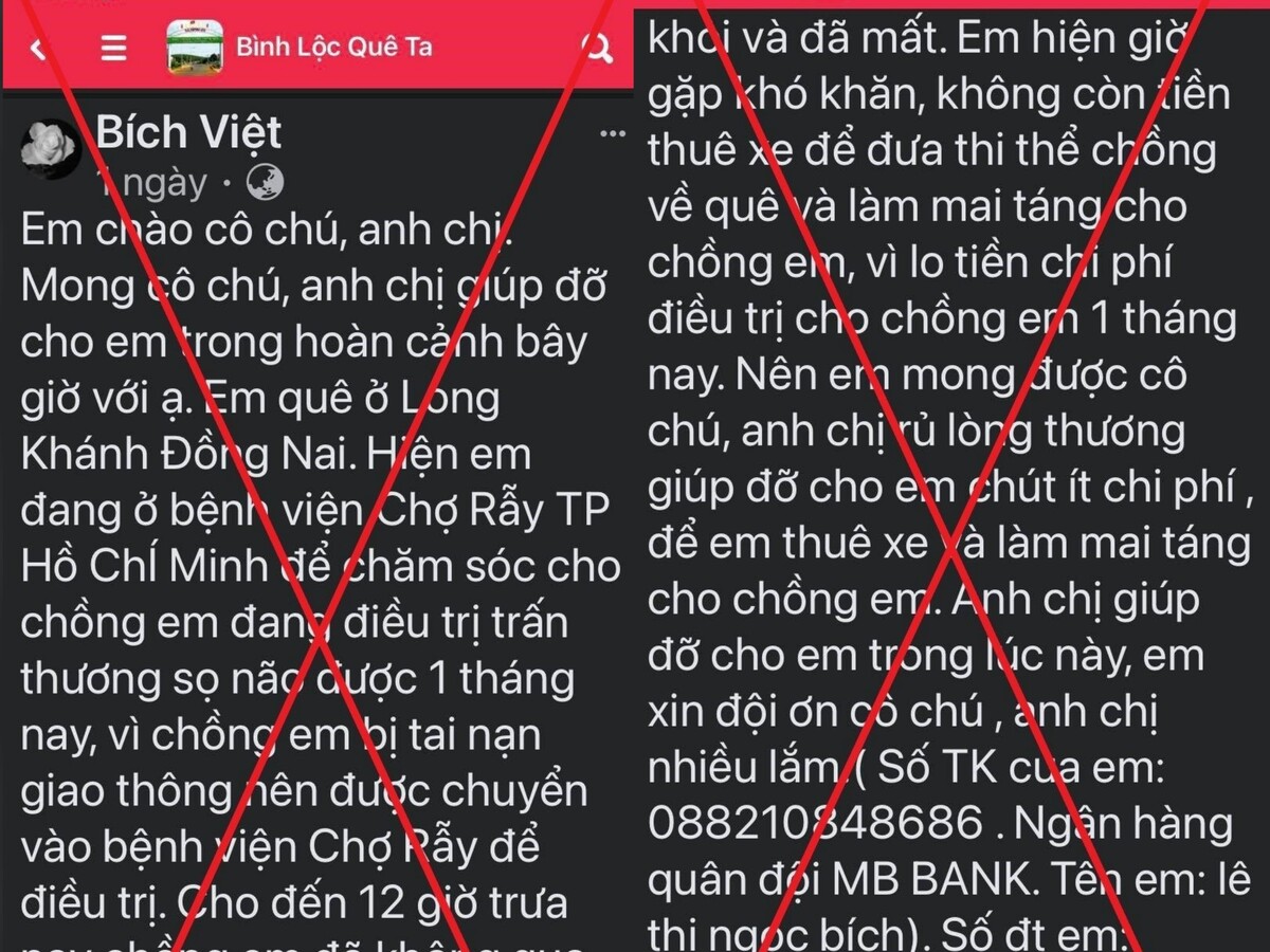 Cụ thể, một tài khoản Facebook đang đăng tải bài viết kêu gọi cộng đồng hỗ trợ chi phí mai táng cho chồng vì tài chính cạn kiệt sau thời gian điều trị tại Bệnh viện Chợ Rẫy, TP.HCM.