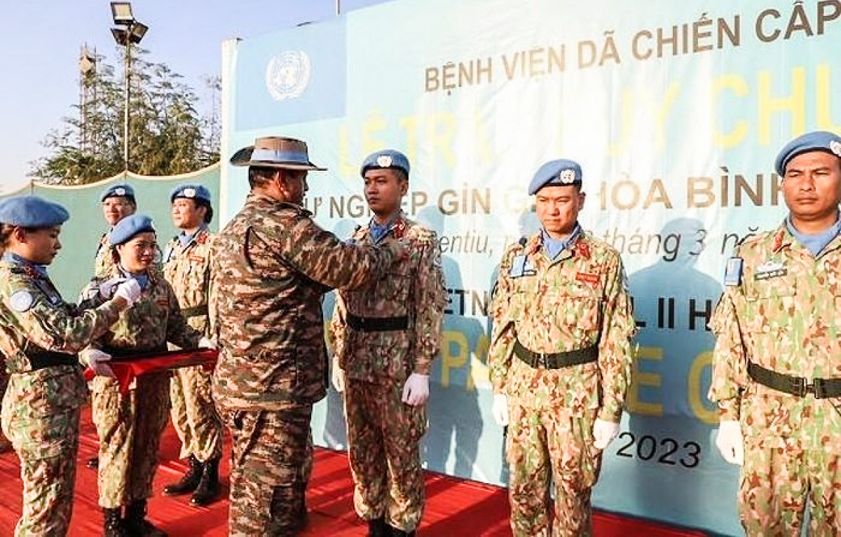 Bệnh viện dã chiến cấp 2 số 4 Việt Nam vừa đón nhận huy chương Gìn giữ Hòa bình Liên Hợp Quốc (LHQ), đánh dấu cột mốc quan trọng sau gần một năm kể từ ngày triển khai lực lượng tại phái bộ Gìn giữ Hòa bình LHQ tại Nam Sudan (UNMISS).